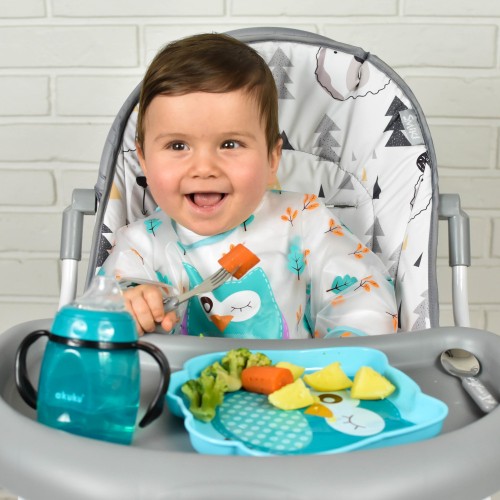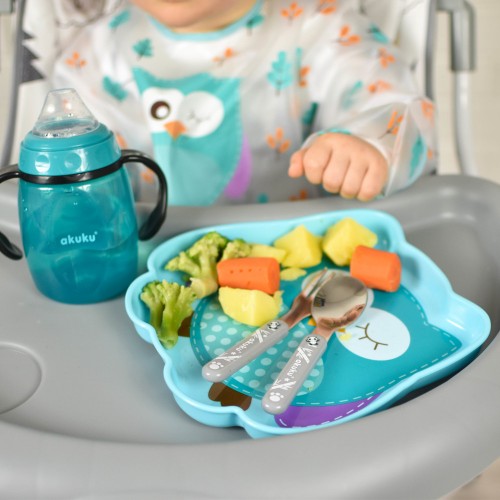 Wygodne szerokie uchwyty i ergonomiczny kształt ułatwiają trzymanie kubeczka w małych rączkach, a miękki silikonowy ustnik nie podrażnia delikatnych dziąseł i pierwszych ząbków dziecka.