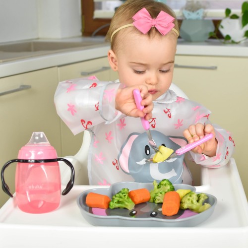 Wygodne szerokie uchwyty i ergonomiczny kształt ułatwiają trzymanie kubeczka w małych rączkach, a miękki silikonowy ustnik nie podrażnia delikatnych dziąseł i pierwszych ząbków dziecka.