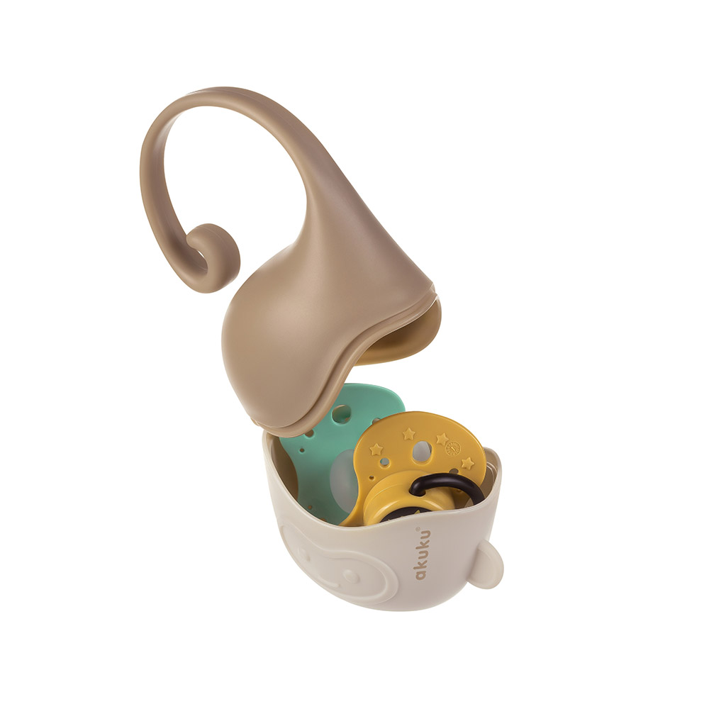 Praktyczny pojemnik na smoczek jest bardzo przydatny w czasie podróży lub spacerów.