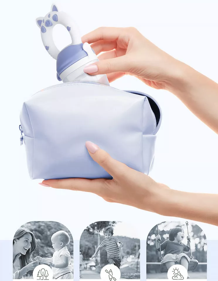 W zestawie znajduje się specjalnie pokrywka, dzięki której nawet podczas spacerów maluszek może rozkoszować się pysznym jedzonkiem. W każdej chwili możesz zamknąć gryzaczek bez obaw zabrudzenia pokarmu