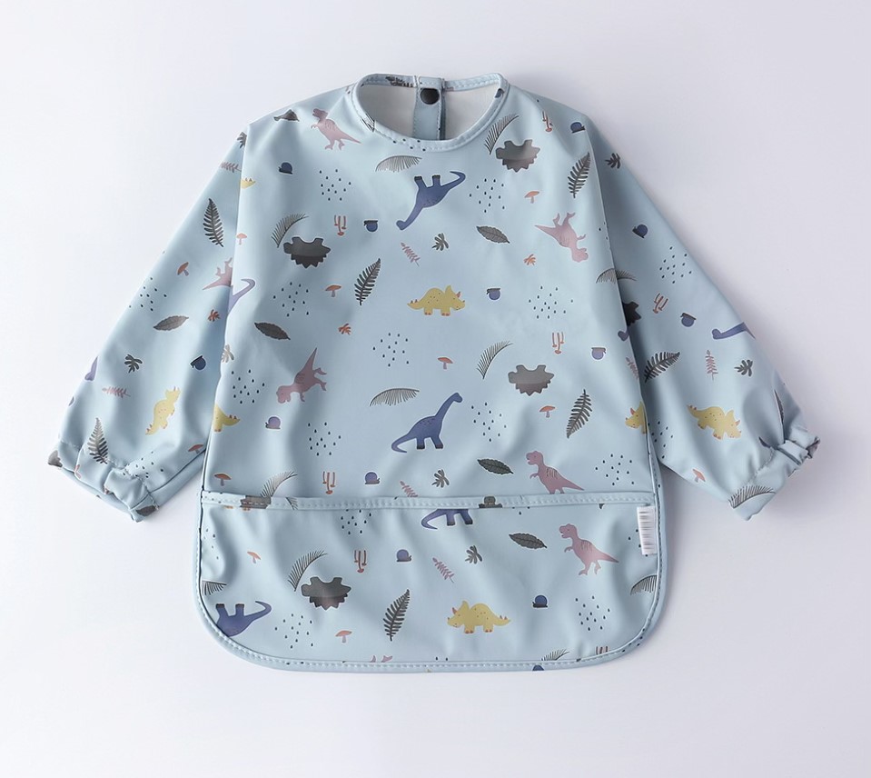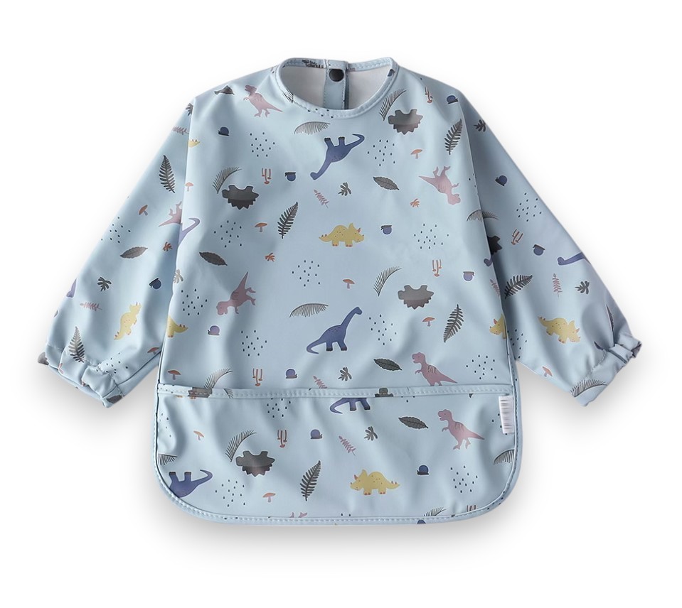 Fartuszek został wyposażony w długie rękawy oraz funkcjonalną kieszonkę na resztki po posiłku, którą łatwo wywiniesz na "lewą stronę", tworząc praktyczną miseczkę. Dzięki grubej lamówce kieszonka staje się odstającą miseczką, utrzymującą wszystkie resztki w jednym miejscu – idealne rozwiązanie przy metodzie BLW!
