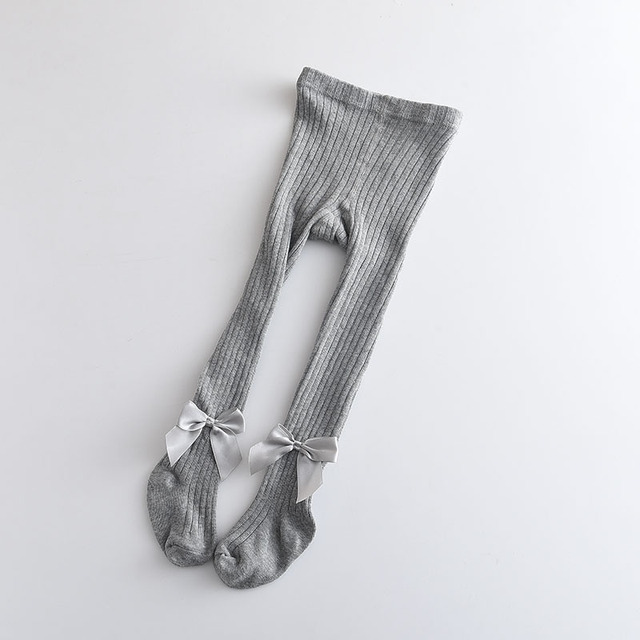 Szare Rajtuzy Prążkowane Rajstopki Prążek Rajstopy Dziecięce Z Kokardkami 2-4 L