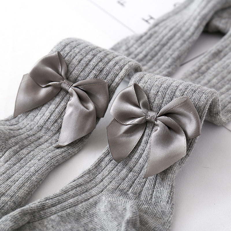 Szare Rajtuzy Prążkowane Rajstopki Prążek Rajstopy Dziecięce Z Kokardkami 4-6L