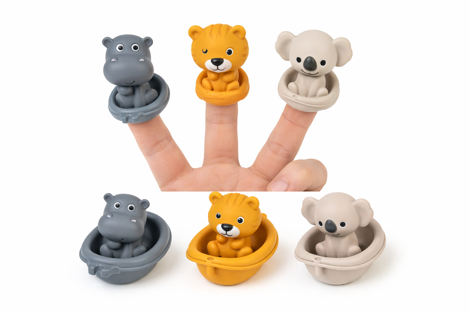 ✔ 3 miękkie figurki zwierzątek w przyjaznych, stonowanych kolorach